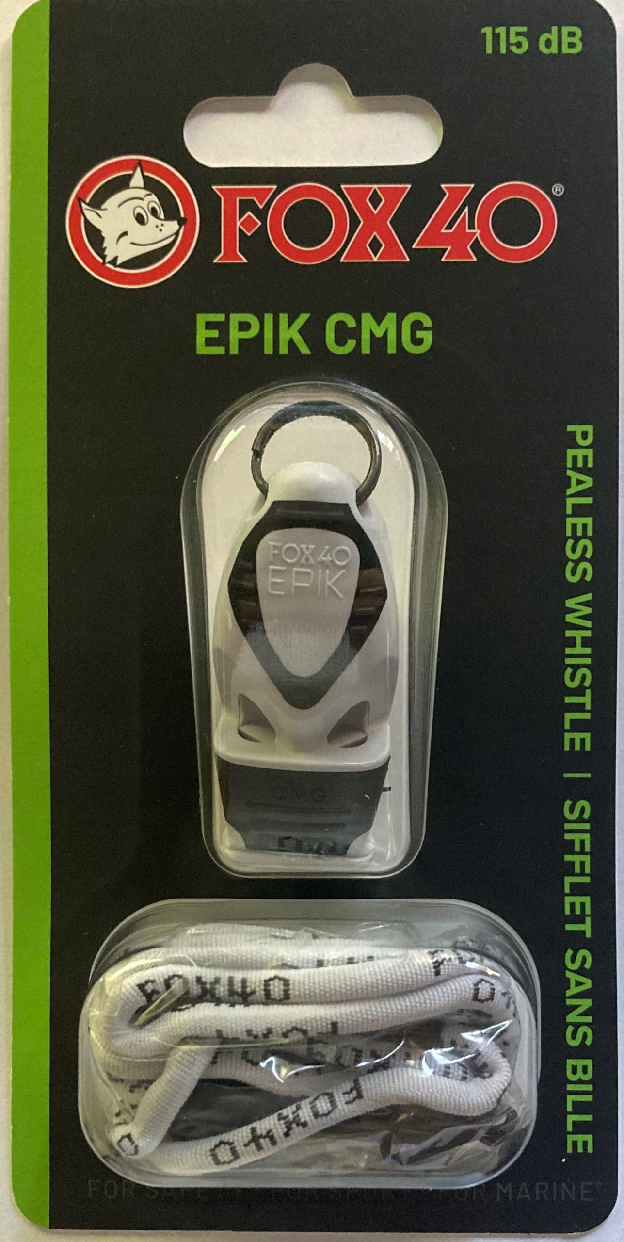 - GWIZDEK FOX 40 EPIK CMG BIAŁY Z USTNIKIEM SILIJONOWYM w celu ochrony zębów